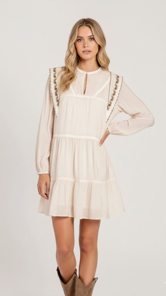 Découvrez la Robe Marcelle, une pièce incontournable alliant élégance et confort. Confectionnée dans un tissu fluide composé de 50 % Tencel et 50 % polyamide, elle épouse délicatement vos formes. Son col rond et ses manches longues offrent une silhouette intemporelle, tandis que la fermeture boutonnée permet un ajustement parfait. Doublée pour un port agréable, elle se distingue par ses détails brodés raffinés. Idéale pour créer des looks sophistiqués au quotidien.